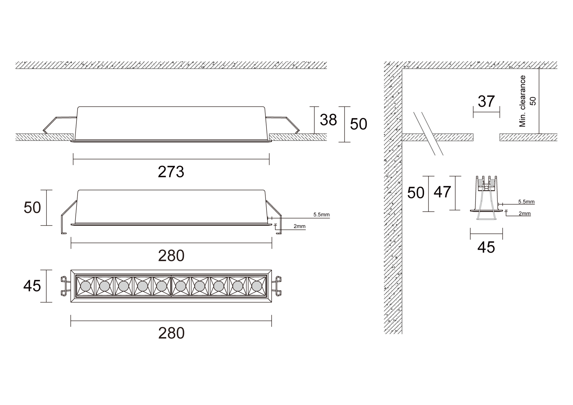 L273mm*W37mm*H50mm